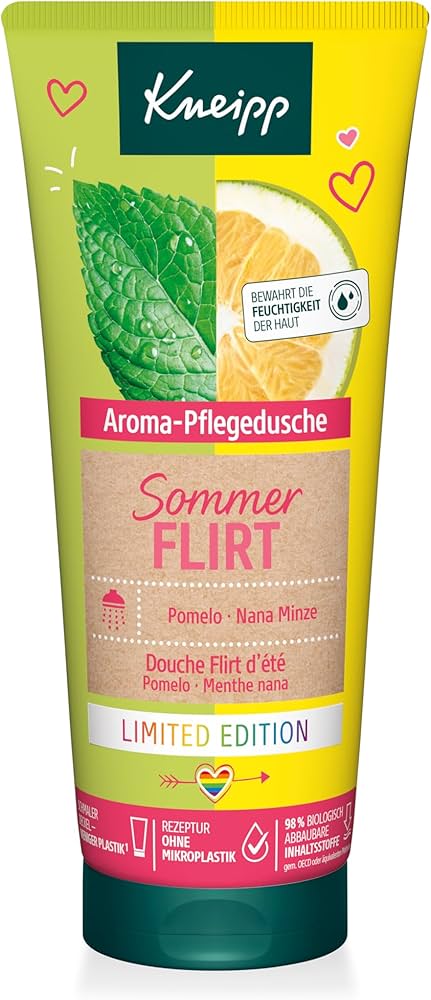 Un parfum frais et fruité insouciant et des extraits de pomelo et de menthe nana confèrent un air d’été à chaque douche.